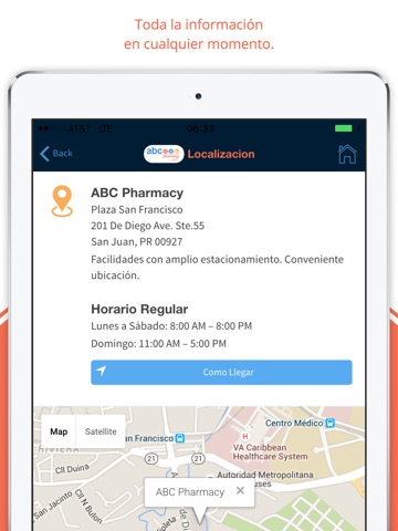 Toda la información en cualquier momento: toque para llamar, cómo llegar, horario, servicios, eventos, noticias, temas de salud, medicinas y suplementos y más.