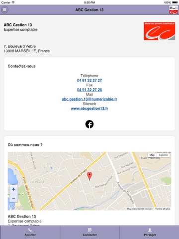 Cette carte de visite permet de récupérer rapidement les informations utiles de la société telles que :