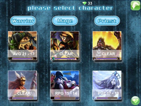 Player can select three different roles: warrior,mage and priest and man/woman.