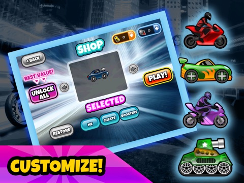 • Unlock and master stunts. Wow the crowd, charge your boost and make your competition drool.