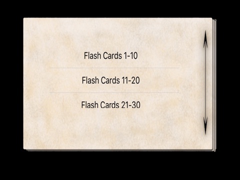 When you start this App you will be able to scroll through different sets of Flash Cards that you can Study.
