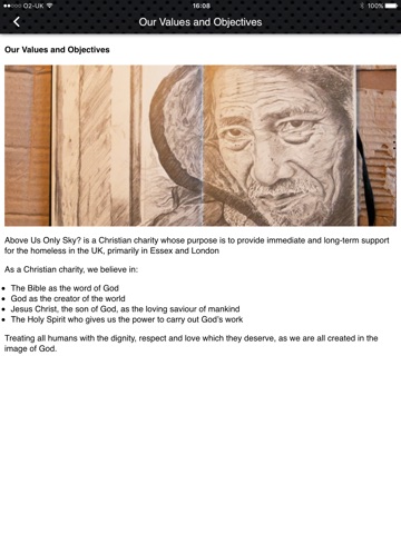 Above Us Only Sky? is a Christian charity whose purpose is to provide immediate and long-term support for the homeless in the UK, primarily in Essex and London.