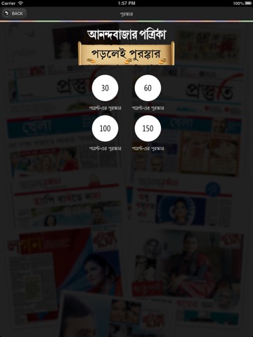 You can download this application on your iPhone or iPad from Apple App Store and play the Anandabazar Patrika Porlei Puroskar contest regularly. A question will appear in Page 2 of Anandabazar Patrika from Tuesday to Sunday. 3 probable answer options will also be available. You need to read the relevant article to find the the right answer and use this application to submit your choice. For each correct answer you will accumulate points. Once you reach the minimum slabs (30/60/100/150) you can redeem your points for the gifts mentioned in the gifts section. You can also check your profile, accumulated points, redemption history and even track your redemption status. Sign up to play and win exciting gifts.