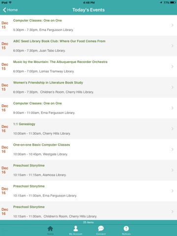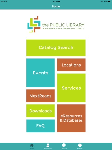 The ABQ Library mobile app makes it easy to discover and request titles from the catalog, view your account, and access content such as ebooks, eaudiobooks, streaming music, and digital magazines. Quickly find branch locations, hours, and events. Receive library closures and other notices delivered to your device. Use the ISBN scanner to check the library’s catalog for copies of a book. Connect with us on Facebook, Twitter, and the library blog.
