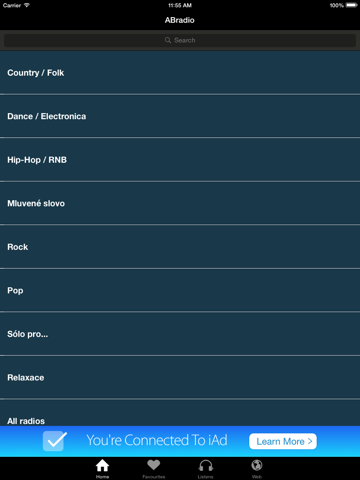 - in-app web browsing of Abradio.cz – web where you can find many actual music articles, reviews, reports