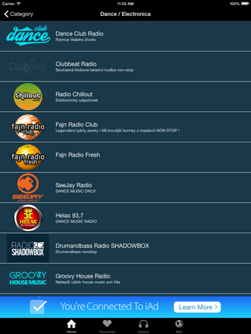 - více než 100 FM a internetových rádií z České republiky a Slovenska v kategoriích podle hudebného stylu rádia z nabídky ABradio.cz, např. Rádio Blaník, radio City 93,7 FM, Fajn Radio, Rock Rádio Šumava, Rádio Humor, Rádio Povídka atd.