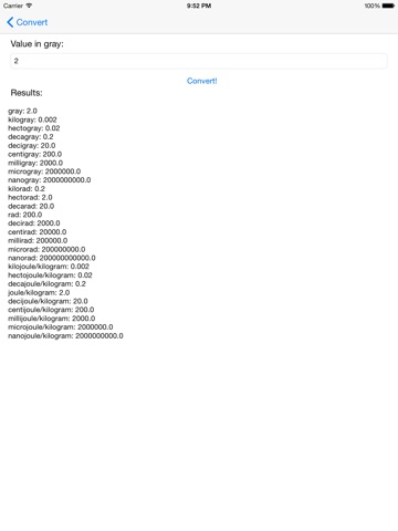 Use this useful tool to convert absorbed dose choosing one of the 27 units of measurment included in this app, that are: