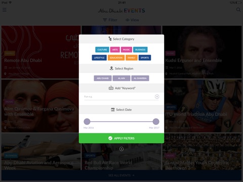 This mobile application is Abu Dhabi’s official calendar and one-stop resource to discover the best of the emirate’s happenings. Abu Dhabi’s action-packed calendar includes international motorsports events, a golf championship, music, gourmet, heritage and cultural festivals, watersports and aerobatic shows, high profile business conferences and vibrant trade fairs.