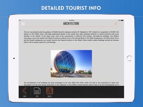 AUGMENTED REALITY, unlike other tourist guides you will be able to discover the city with the best iPhone tool - AR - Just click on the AR button, turn yourself 360° and view on the screen where the best spots are and how to find them. You can also scroll up and down to view the closest and furthest attraction. Slide through the tutorial for more tips.
