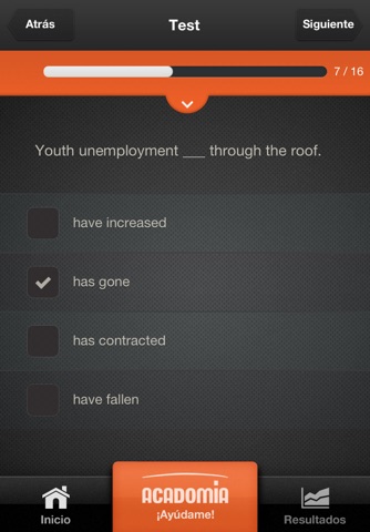 En este modo, puedes comprobar cuál es tu nivel de preparación para el examen, midiendo cuánto tardas en contestar a todas las preguntas de cada uno de nuestros tests de nivel. Tienes a tu disposición más de 70 preguntas de cada materia que te permitirán evaluar tus conocimientos de Inglés, Historia de España e Historia de la Filosofía.