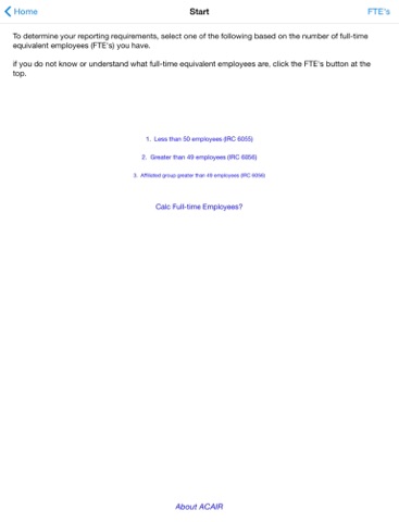 The information contained in this app will help you determine whether you need to file the information returns mandated by the Affordable Care Act under IRS Code Sections 6055 and 6056 or if you can rely on your health care provider to take care of this for you.