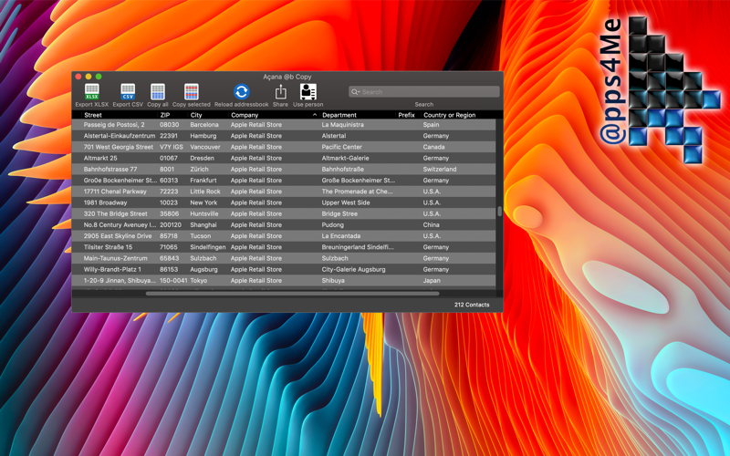 • Copies the address of all selected contacts to the clipboard • Address either with company/department