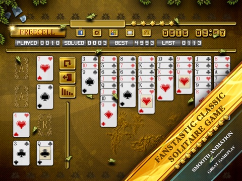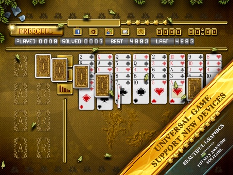 Awesome classic Freecell solitaire game which everyone know and love. Now with truly awesome graphics, animations and gameplay that would work on your iPhone, iPod and iPad. This game contains scoring system, so you can try to climb higher position on hi-score table and compare result with your friends.
