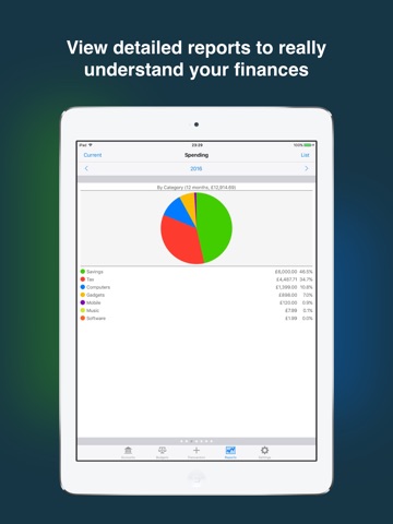 - Track multiple accounts: checking, current, savings, credit cards, loans/mortgages ... etc