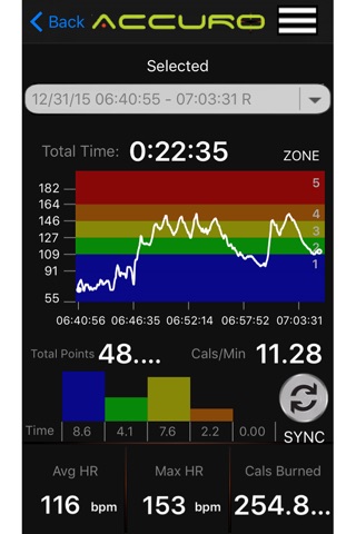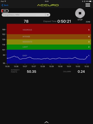 ・View real-time heart rate displayed in a colored heart rate zone graph