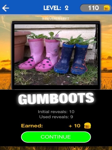 Reveal the quality images by tapping each square and receive gold coins for correct answers. Use your gold coins to pay for extra taps, reveal letters or remove letters to make solving the puzzle easier.
