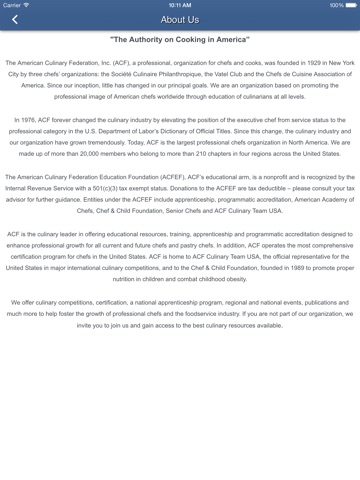 This app is for the American Culinary Federation, INC. Chapter in Palm Beach County. The American Culinary Federation, Inc. (ACF) was founded in 1929 in New York City by three chefs’ organizations: the Société Culinaire Philanthropique, the Vatel Club and the Chefs de Cuisine Association of America. Since our inception, little has changed in our principal goals. We are an organization based on promoting the professional image of American chefs worldwide through education of culinarians at all levels. Today, ACF is the largest professional chefs’ organization in North America. We are made up of more than 20,000 members who belong to more than 210 chapters in four regions across the United States.