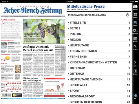 Die Acher-Rench-Zeitung ist die Lokalausgabe für Oberkirch und das Renchtal, den Raum Achern sowie Rheinau, Renchen und Appenweier. Die Redaktion bietet viele Serien mit Servicecharakter sowie spannende Informationen, gut recherchierte Hintergründe, pointierte Kommentare, Unterhaltung und Tipps zum täglichen Einkauf.