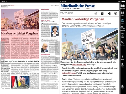 Als Nutzer der digitalen Ausgabe erhalten Sie zusätzlich Zugriff auf Multimediainhalte. Ausgewählte Artikel sowohl im überregionalen Teil als auch im Lokalteil werden mit Fotos oder Videos oder anderen Features ergänzt.