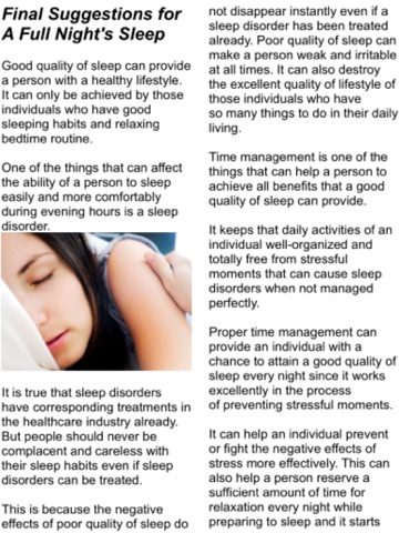 Good sleeping habits provide people with a rejuvenating sleep every night. A person who does not have good sleeping habits will always be prone to several kinds of sleep disorders that are not too easy to treat. It is true that sleep disorders have corresponding solutions in the field of healthcare industry these days. But people should never let themselves be victimized by these medical conditions for each of it can destroy their health status permanently especially when not treated immediately.