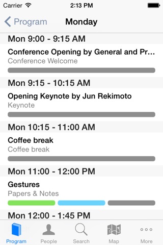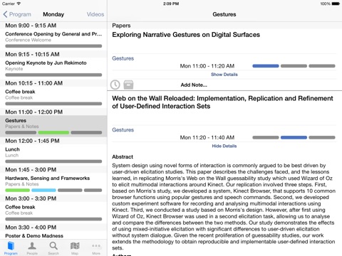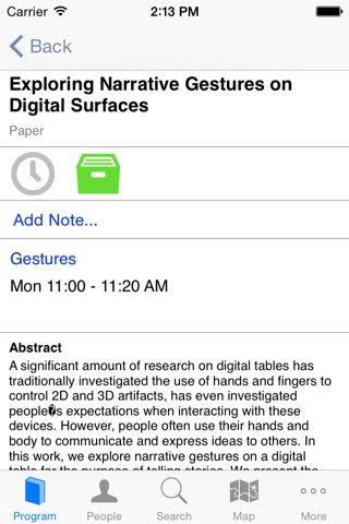 Create, save, and export your own custom program on the iPhone/iPad to remember the sessions and papers in which you are interested.