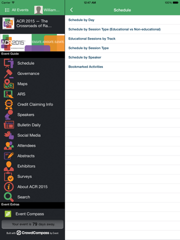 The ACR 2015 Meeting App offers the following features: