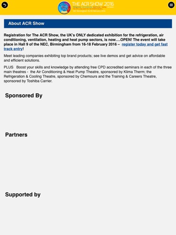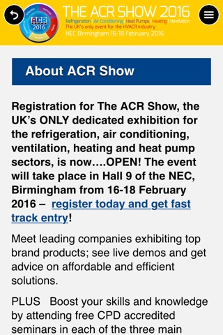 Located at the very heart of the UK, at the premier National Exhibition Centre, Birmingham, The ACR Show is the ONLY national exhibition for the refrigeration, air conditioning, ventilation, heating and heat pump sectors.