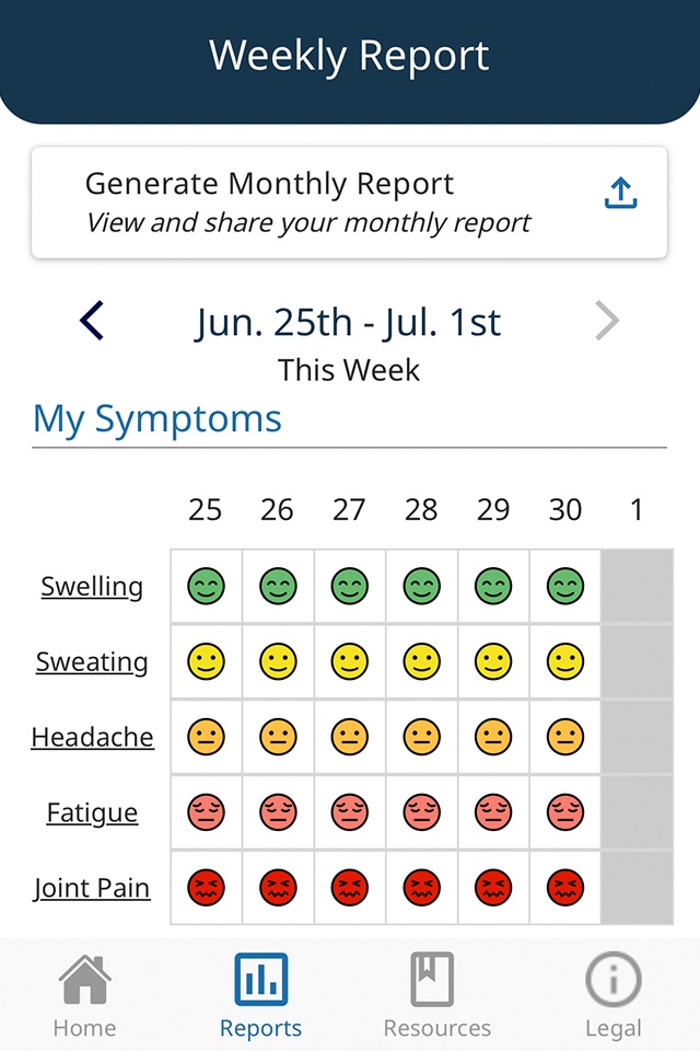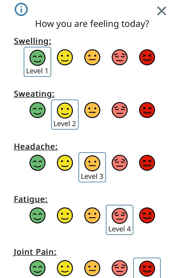 •Track how the 5 symptoms of acromegaly (sweating, swelling, headaches, fatigue, and joint pain) are affecting you each day