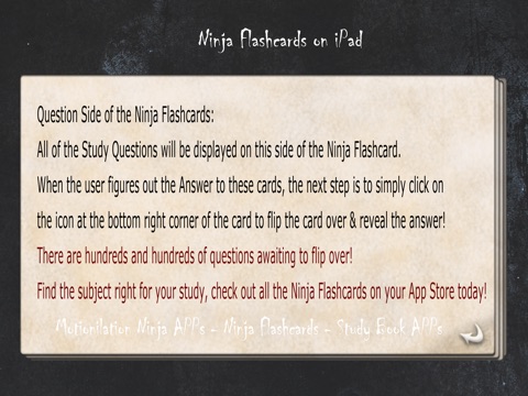 When you start this App you will be able to scroll through different sets of Flash Cards that you can Study.