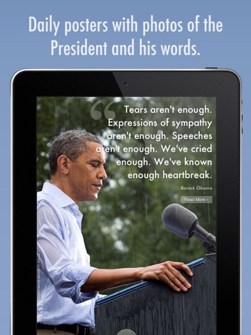 The app is in no way associated, endorsed or supported by the President, the White House, Organizing for Action or any other organization. The content is used in accordance with copyright information published on the White House website.