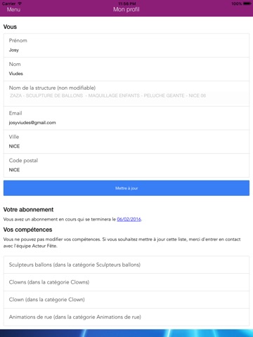 Lapp AF Mon Compte permet aux prestataires inscrits sur le site Acteur Fête laccès à toutes les données liées à leur compte : demandes de devis, messages directs, buzz, photos, gestion du profil...