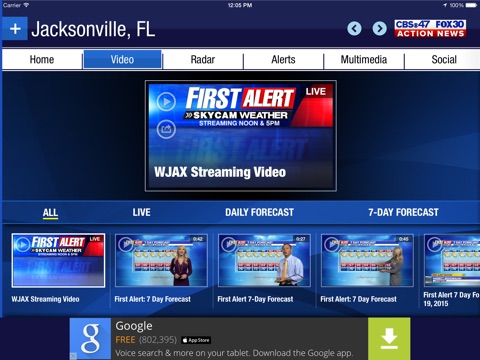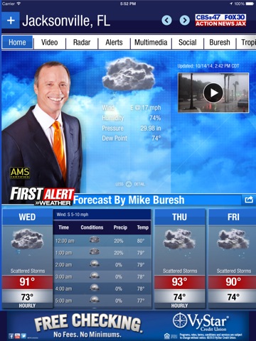 Get the most accurate Jacksonville-area forecast in town with the First Alert Weather App from Action News Jax - WJAX/WFOX. The app features the forecast from your neighborhood, live radar, breaking weather alerts, live streaming video from Chief Meteorologist Mike Buresh and the First Alert weather team.