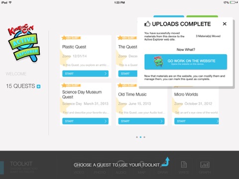As explorers work their way through the quest requirements, they can upload the resources they create to the Active Explorer website. Then, kids go to the website to use that data to make posters, comics, slide shows, and other SmartWorks to show off the information they compiled.