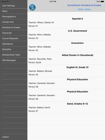 Parents can log into the iOS App with their existing ActiveParent account to view information about their student(s) including the following: