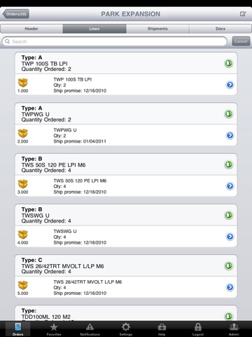 -View order line detail including product spec sheets