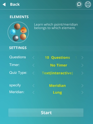 +Quizzes can be run only for specific meridians, elements etc.
