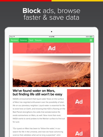 - Fully featured ad blocker