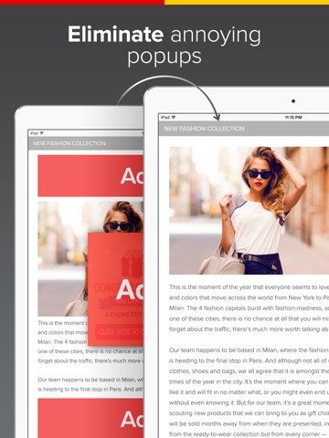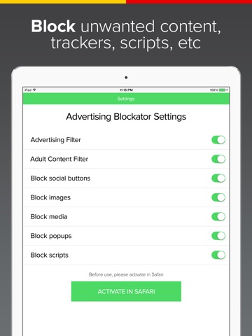 With Ad Blocker you can block everything: ads, trackers, popups, redirects, scripts, social widgets, images, media in a single tap!
