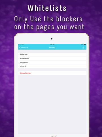 - Whitelisting (Adblock Blocker Browser gives you complete control: whitelisting with Adblock Blocker Browser is effortless — just a tap from within Safari.)