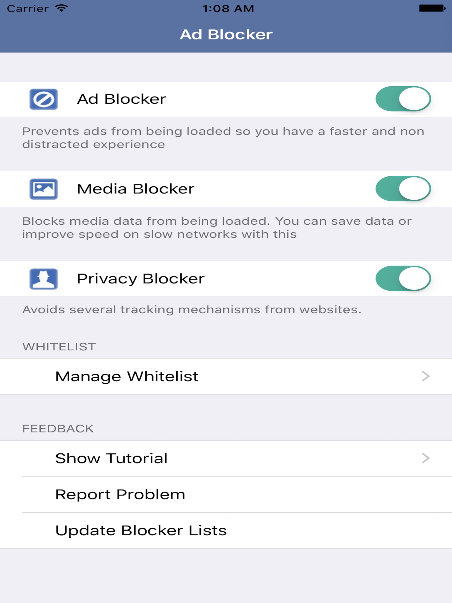 Ad Blocker Pro is an awesome 3 in 1 app that comes with pro features listed below: