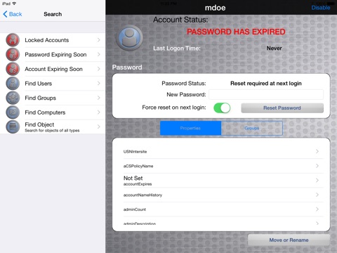 AD HelpDesk Lite is like have ADUC or ADAC available from your iPhone or iPad. AD HelpDesk Lite is incredibly fully featured. More than 90% of your AD management operations can be performed without requiring you to spend a dime. A few more advanced management functions can only be performed by the fully featured AD HelpDesk application.