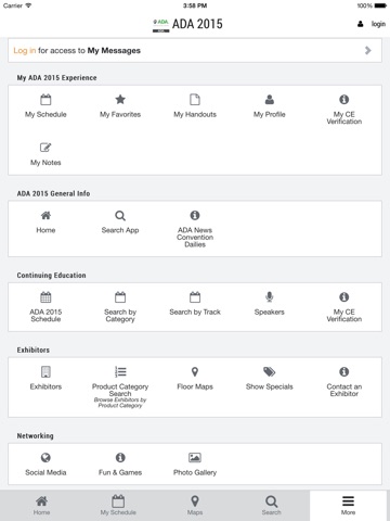 Designed to maximize your experience, the ADA 2017 mobile app is where you can connect with other attendees, build your schedule, verify your CE, view the interactive exhibitor map and more. Wondering where your next event is or when you can fit another CE course into your schedule? The ADA 2017 app offers you the most up-to-date information so youll never be late or miss an opportunity to spend time with friends and colleagues.