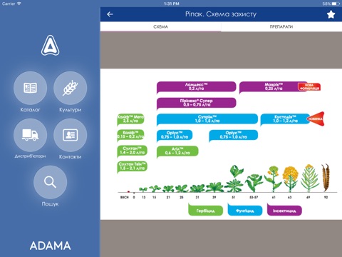 • Багатофункціональний пошук: за назвою культури, шкідника або хвороби, діючої речовини та назвою препарату;