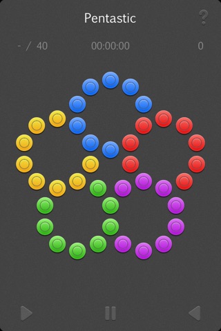 Each puzzle is made up of coloured discs in slots spread along interlinking loops. The discs are mixed up to start - the objective is to return each disc back to a slot of matching colour.