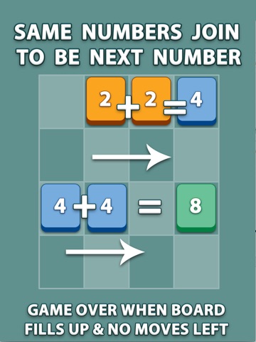 Joining 2’s tiles becomes the 4’s tile. Joining 4’s tiles becomes 8’s tile, and so forth. Join to build up to the next number to get to the number 2048 to win.