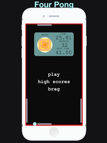 Four Pong is a four-sided update to the classic Pong game. You control *all* the paddles with one finger and must keep the pong ball from touching the edges. Look out! The pong ball speeds up every 5 seconds.