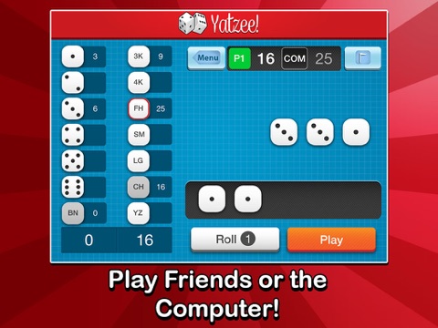 A fun version of the classic dice game. The option to play a computer opponent makes this app stand out. For this app to earn five stars, I would gladly pay .99 cents for ad removal, the ability to play in portrait (vertical) mode and improved CPU skill.