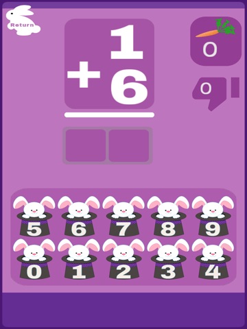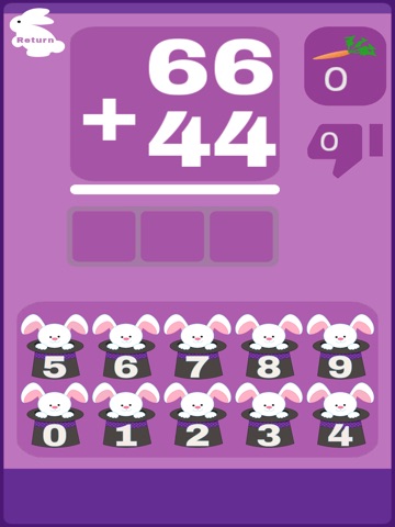 Drag the numbers to complete the addition or subtraction. The bunny will indicate you if it is properly calculated.