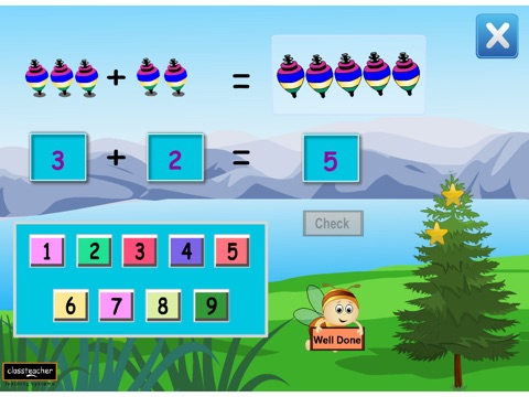 It’s a fast paced game where you can learn addition and have fun. You have to count the number of pictures; enter the right number in the boxes. Calculate the answer mentally enter into the box and check it.