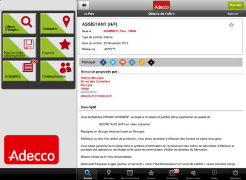 - Share job on Twitter, Facebook or Viadeo.